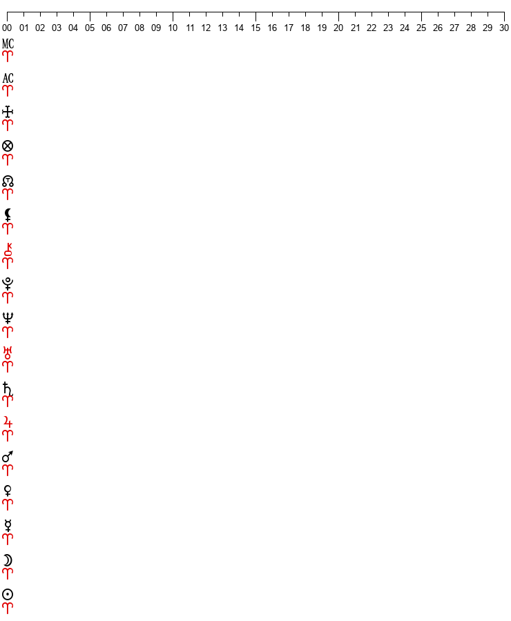 Mars/Lilith = 14 Sag 01Mars/Node = 05 Aqu 56Mars/P. of Fortune = 17 Sag 01