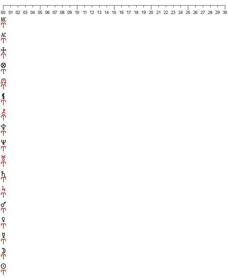 Mars/Lilith = 12 Sag 42Mars/Node = 04 Aqu 49Mars/P. of Fortune = 16 Sco 48