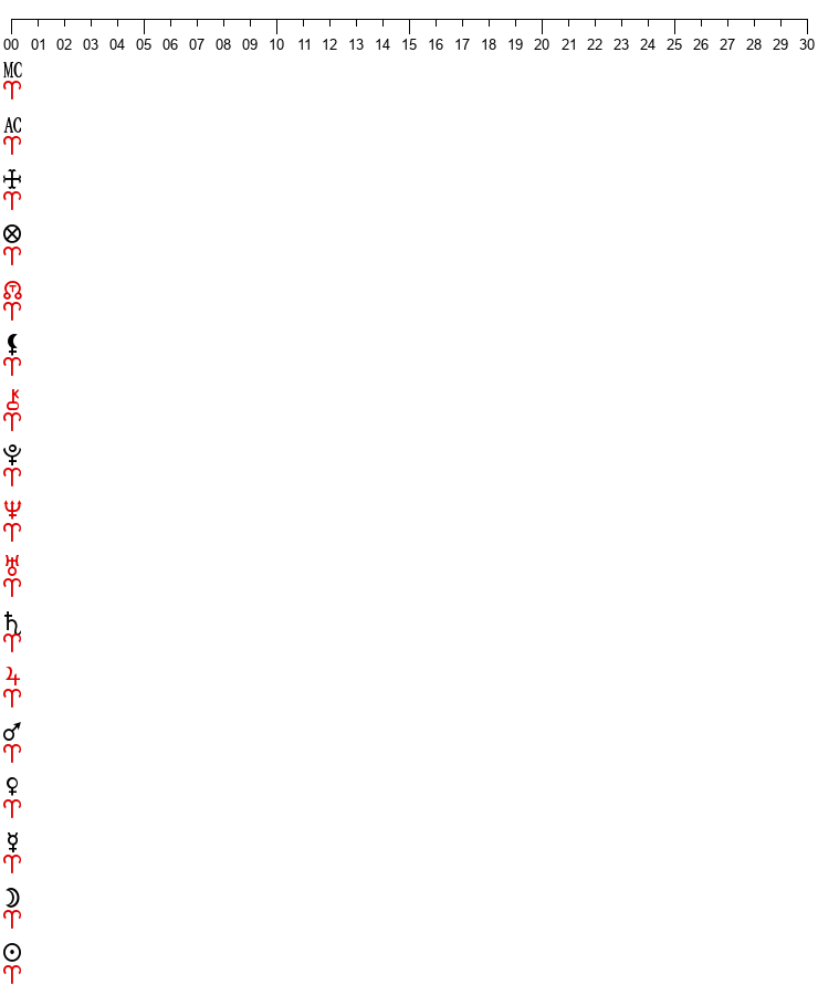 Mars/Jupiter = 06 Lib 27Mars/Saturn = 06 Aqu 44Mars/Uranus = 08 Pis 42