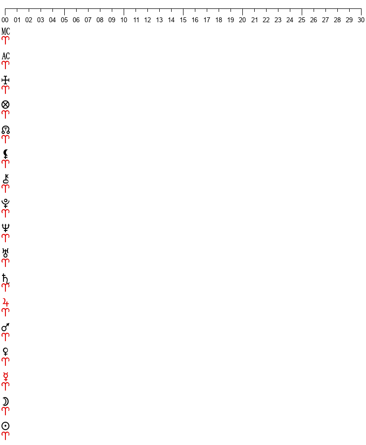 Mars/Lilith = 17 Cap 40Mars/Node = 03 Pis 19Mars/P. of Fortune = 26 Sag 29