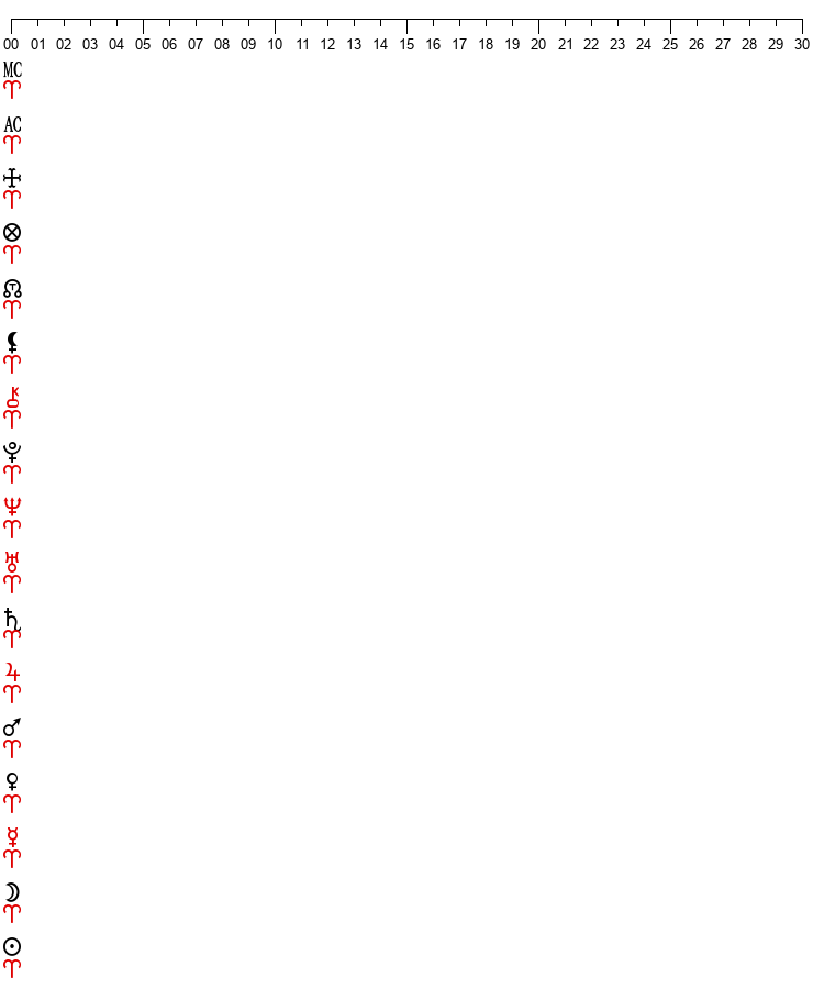Mars/Lilith = 07 Sag 24Mars/Node = 00 Aqu 50Mars/P. of Fortune = 16 Pis 02