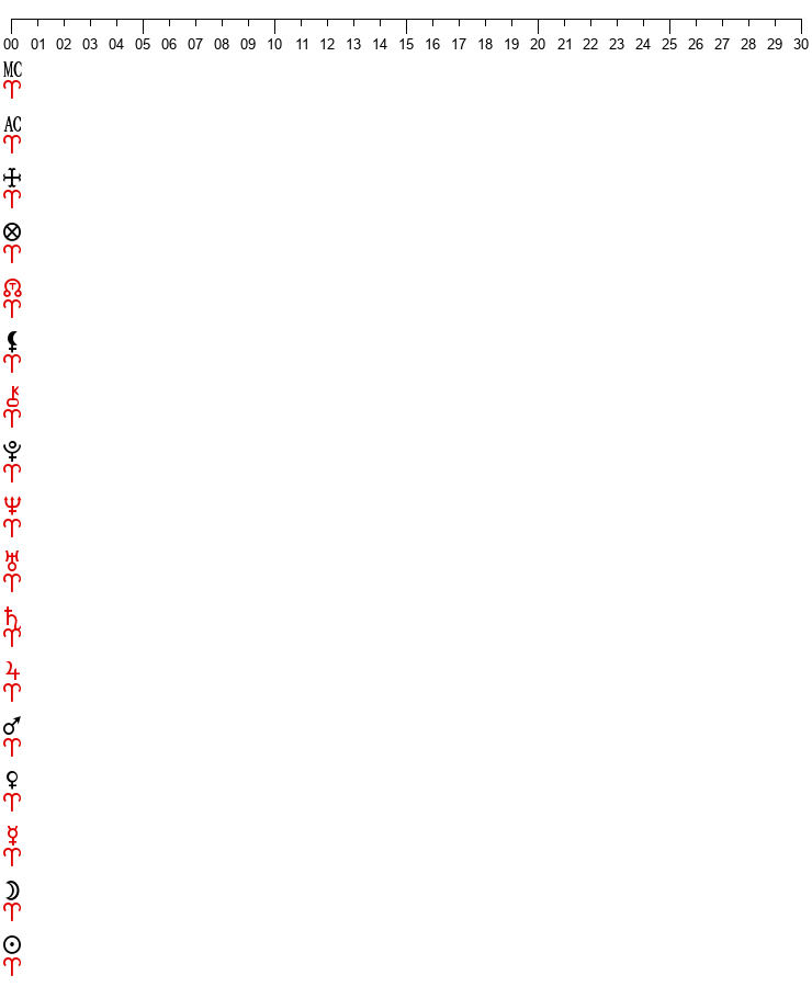Mars/Jupiter = 01 Lib 33Mars/Saturn = 01 Aqu 38Mars/Uranus = 03 Pis 50